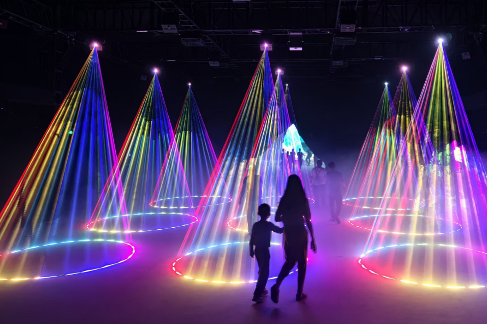 黄成军:本届广州国际灯光节在灯光作品设置上,我们紧扣时代主题,助力经济和社会发展,特别体现“低空经济”与“人工智能”。一方面,作为改革开放的前沿阵地,广州加速布局低空经济赛道,致力于成为具有全球影响力的“天空之城”。在海心沙展出的灯光作品《瞰城》,便通过自主创新的飞行器灯光作品展示,让市民游客身临其境地体验智能光影世界,描绘出智能都市的低空生活圈画卷,展现粤港澳大湾区低空经济的发展成果。另一方面,我们围绕“人工智能”这一主题,利用灯光作品打造巨型沉浸式体验空间,涵盖衣、食、住、行等日常生活的方方面面,让市民游客能走进作品中,与这些充满未来感的场景进行互动体验,直观感受人工智能技术所带来的生活变革。此外,还特别设置了一个沉浸式演艺空间,结合艺术家别出心裁的多媒体创作和镜面空间,打造出超越现实的未来AI技术融入生活的景象。