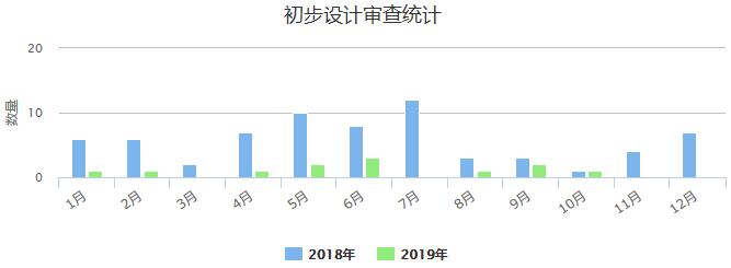 2018年、2019年广州市大中型工程初步设计审查数量情况(柱状图)