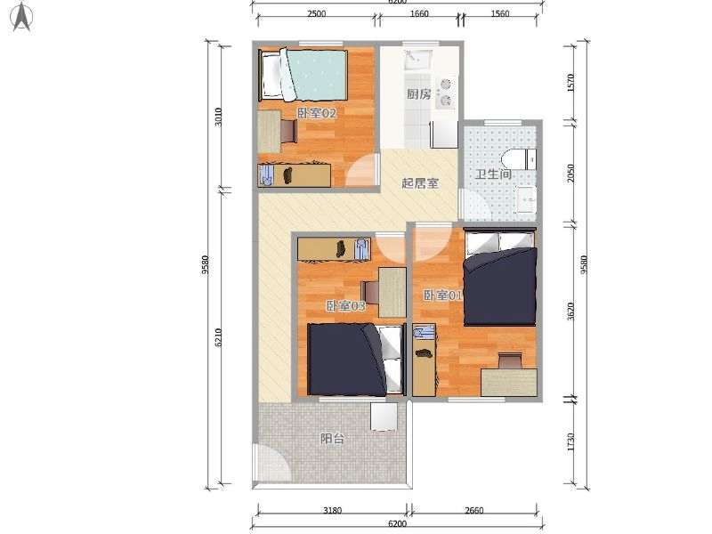 1房 0厅 / 45 ㎡