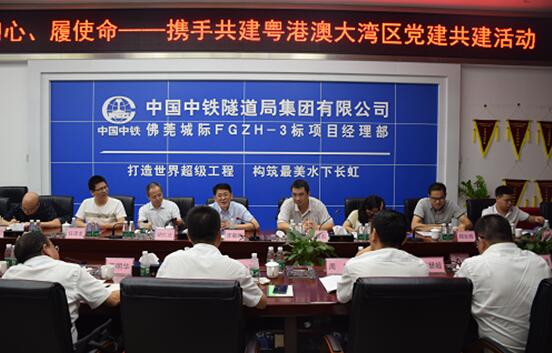 7月18日下午,糖心vlog 建筑业管理处党支部与中铁隧道局华南指挥部党工委在中铁隧道局佛莞城际3标项目部开展以“守初心、担使命--携手共建粤港澳大湾区”为主题的支部党建共建活动,李朝晖副局长以普通党员的身份参加此次活动。