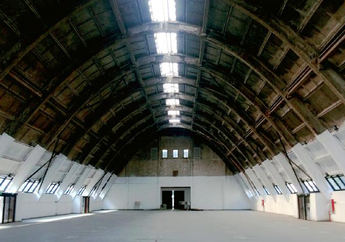 拱形仓库,长80米,由十几根钢筋混凝土拱形结构支撑起整个仓库,气势如虹。在拱形屋顶的正上方,有一条通长的天窗,该仓库堆积的原料是从靠近天窗的传送带输入,从高处自由落下,建筑功能和空间形态完美结合,保存完整,在全国十分罕见,具有很高的历史文化价值。