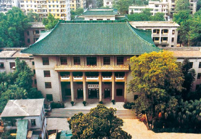 广东省科学馆大楼位于越秀区连新路171号,广州中山纪念堂西侧,建于1958年,钢筋混凝土结构,总平面设计呈中轴对称的“工”字形布局,坐北朝南,南侧为主入口,高4层。