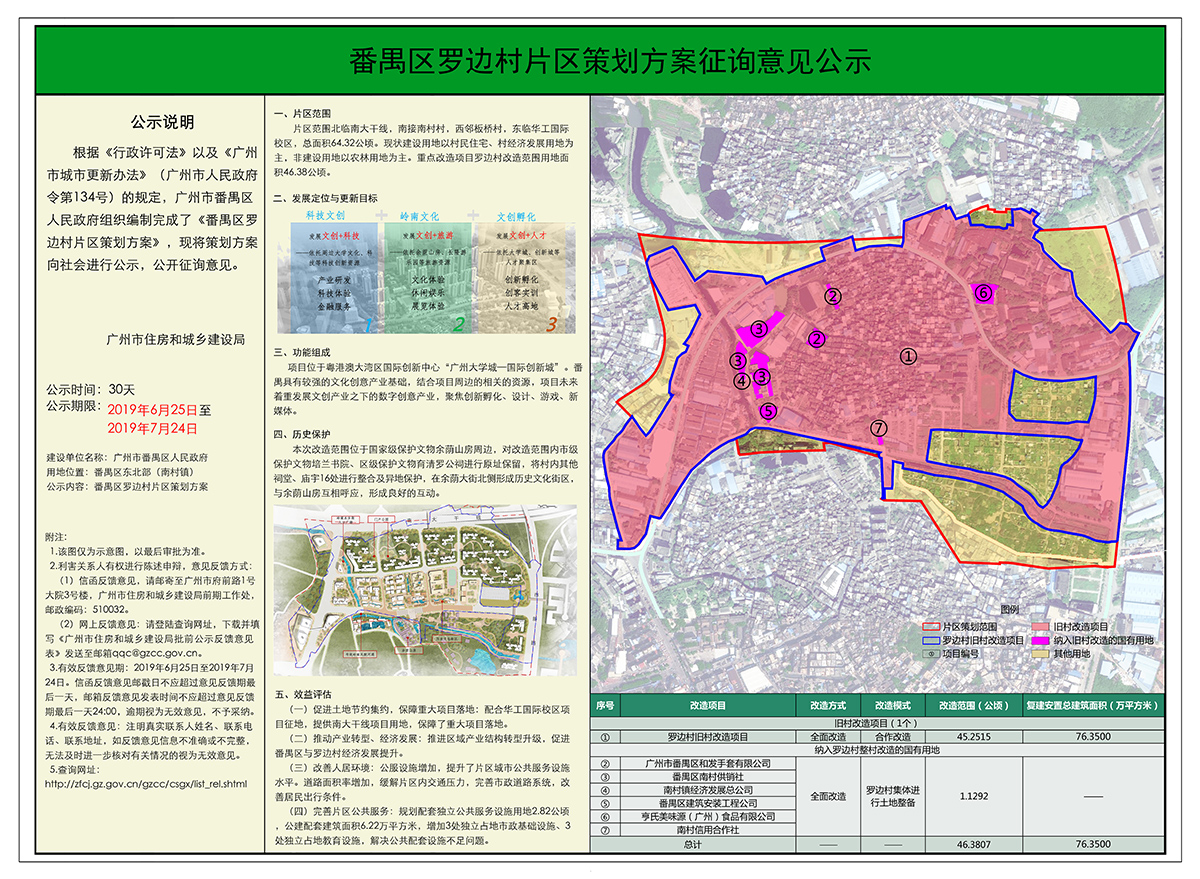 (请点击浏览详细公示图:广州市番禺区罗边村片区策划方案征询意见公示)