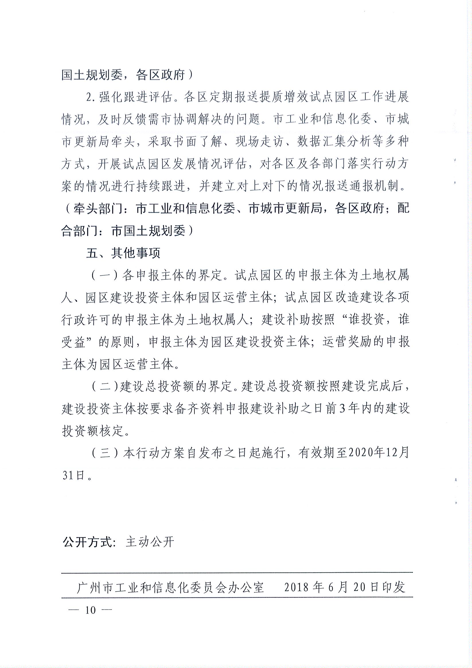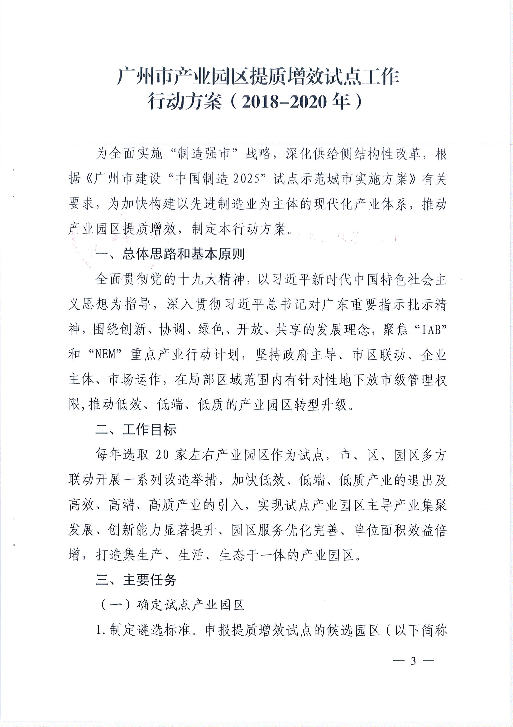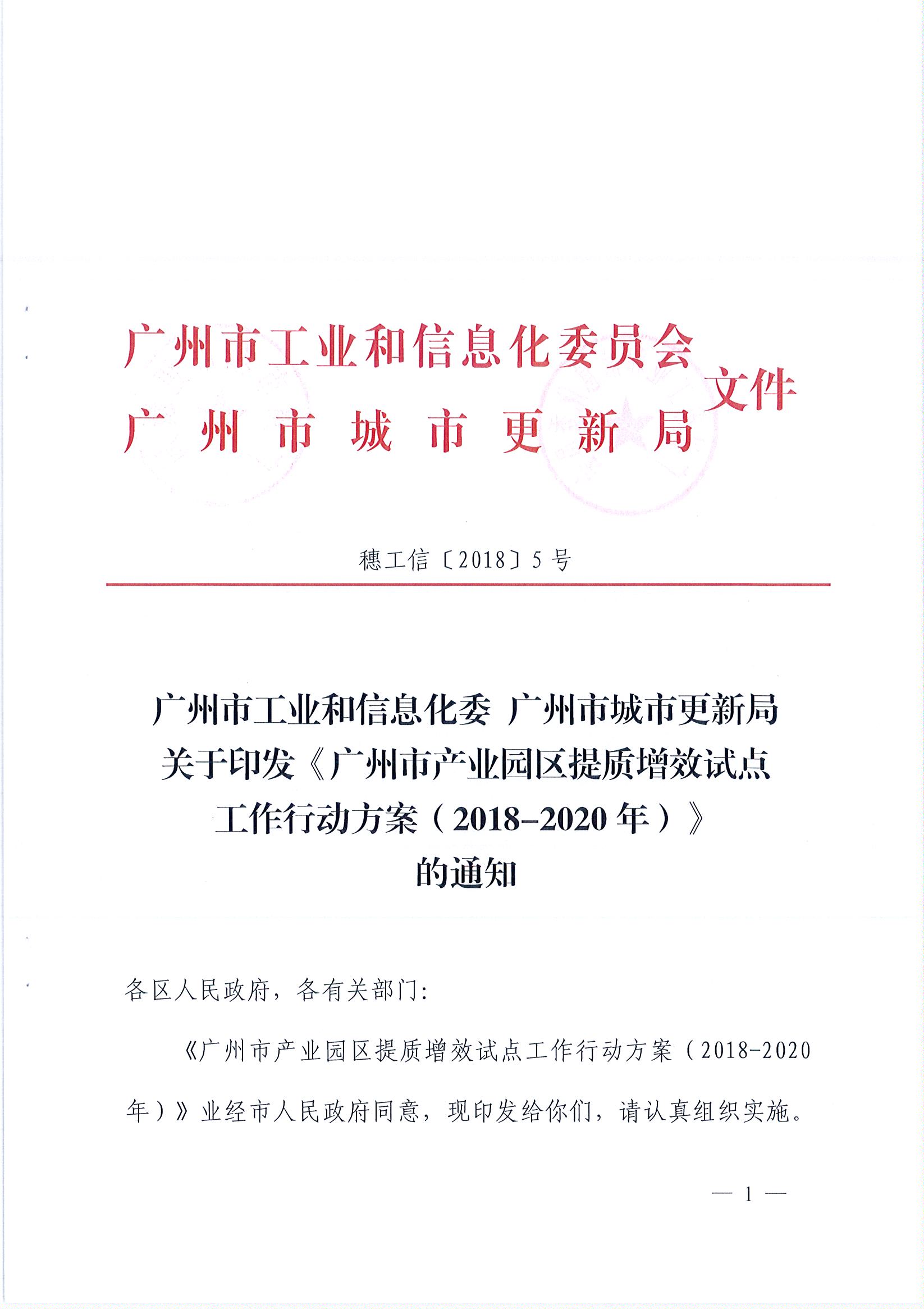 广州市工业和信息化委员会 广州市城市更新局关于印发《广州市产业园区提质增效试点工作行动方案(2018-2020年)》的通知