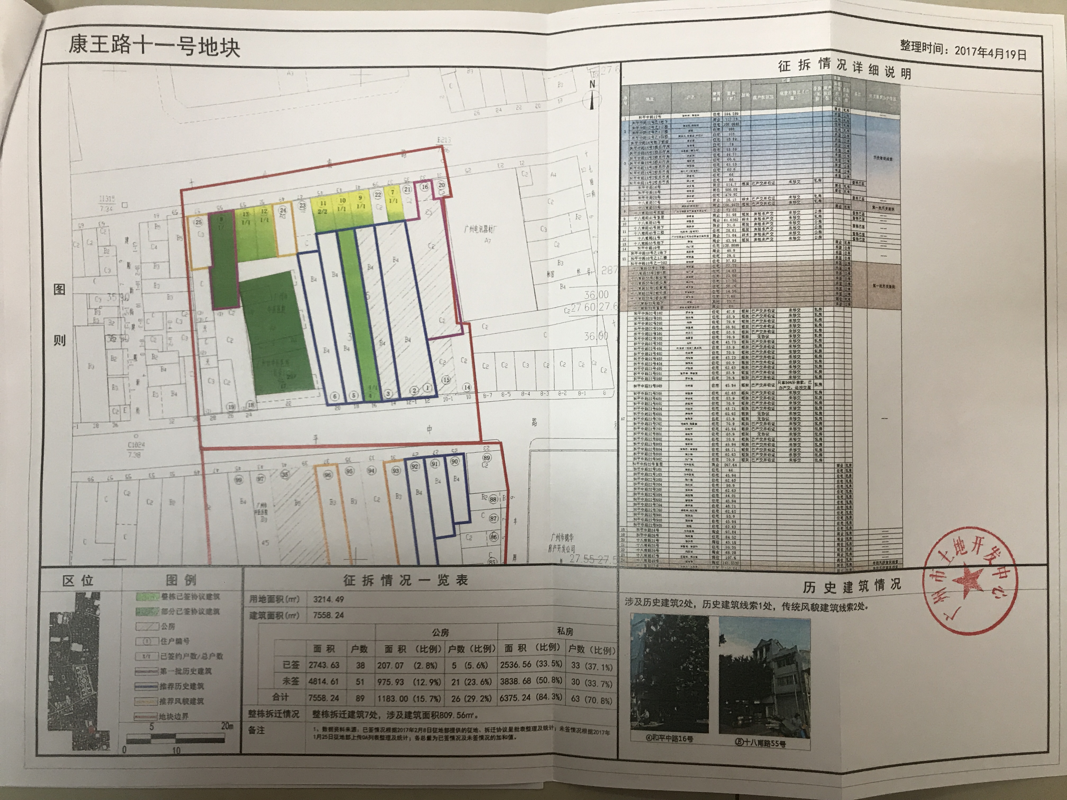 三、根据原广州市国土资源和规划委员会《关于明确康王路11号地块现有建筑保护要求的复函》(穗国土规划函〔2018〕1496号)明确康王路11号地块红线内须保留的保护性建筑明细如下:(一)已认定为历史建筑的共有3处,其中纳入广州市第一批历史建筑保护名录的分别是十八甫路33号、十八甫路55号,纳入广州市第五批历史建筑保护名录的是和平中路12、14、16、18、20号民居。(二)经文化遗产普查登记为传统风貌建筑线索共有2处,分别是:十八甫路49号民居、十八甫路57号。以上具体建筑的保护利用方案以规划许可为准,未经批准不得拆除。