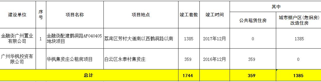 广州市2018年保障性安居工程已竣工项目基本信息(截至4月底)