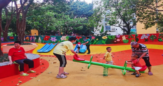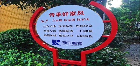 金沙街新社区属于广州市早期保障性住房,于2008年开始,已入住6000多户家庭。为让该社区居民有个更加舒适休闲的环境,感受到新时代新生活新气象,市住房保障办、珠江住房租赁公司联同属地金沙洲街道,经过实地调研,充分听取居民意见,以人文、康养、植物、艺术体系为核心,以家风建设为主题,通过“绣花式”的改造,铺设橙黄相间塑胶地板,增加基础设施、休闲空间、景观小品等,将“立家规、传家训、树家风”文化元素融入整体口袋公园景观,让家风文化慢慢根植保障房小区社区环境中,引导树立传承好家风的正能量社区文化。