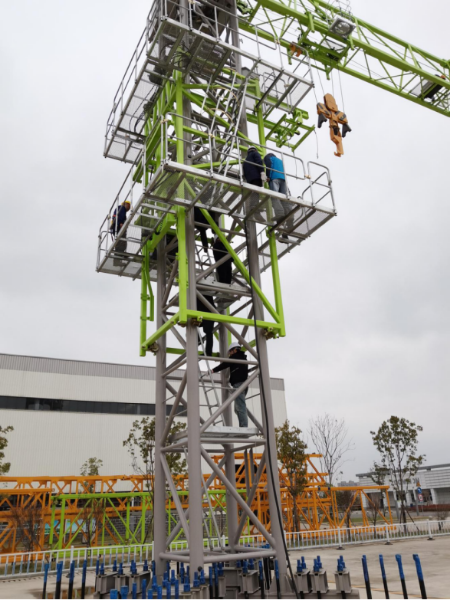 17日,考察团前往建起公司常德智能工厂,近距离参观了塔式起重机和施工升降机的智能产线,并在调机坪现场观摩了两人完成塔机顶升加节的全过程演示。随后,考察团还在专业技术人员的陪同下,爬上塔机平台实地察看各种新技术细节,掌握了解各环节运行原理和安全性能。
