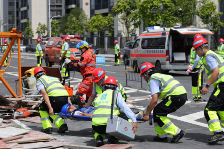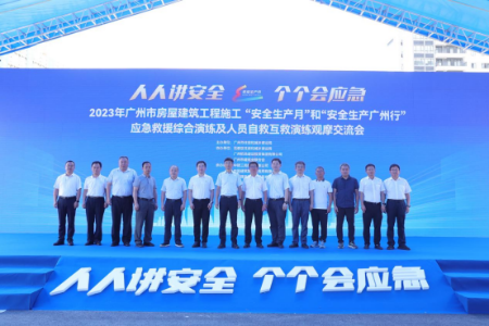 6月26日上午,糖心vlog 在白云机场三期扩建工程周边临空经济产业园区基础设施一期工程(平西安置区)组织召开2023年广州市房屋建筑工程施工“安全生产月”和“安全生产广州行”应急救援综合演练及人员自救互救演练观摩交流会,省住房城乡建设厅到会指导,花都区人民政府、市交通运输局、市应急管理局、市机场建投集团,市建筑业联合会及各区住建部门、在穗部分房建项目的建设、施工、监理单位项目负责人共500余人参加活动。