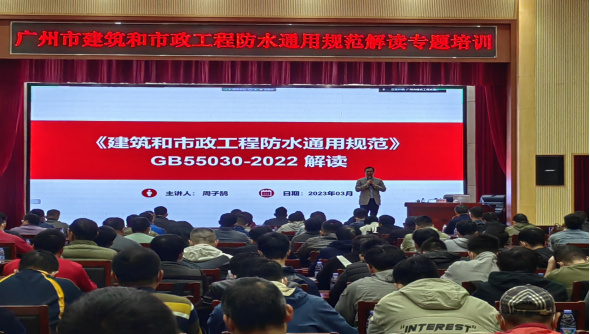 《建筑与市政工程防水通用规范》GB55030-2022为国家标准,自2023年4月1日起实施。本次培训由东方雨虹控股集团总工程师、高级工程师周子鹄博士和副总工程师吴光文高级工程师主讲。结合具体防水工程案例,全面解读新旧规范的相关条文,对提升我市建设工程防水监督管理水平和加强精细化管理具有很强指导性、操作性。