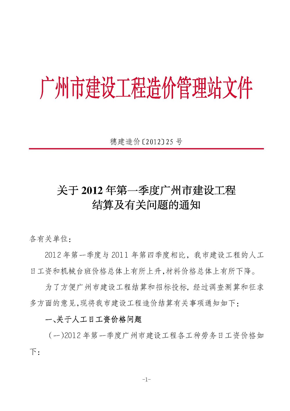 【结算文】关于2012年第一季度广州市建设工程结算及有关问题的通知