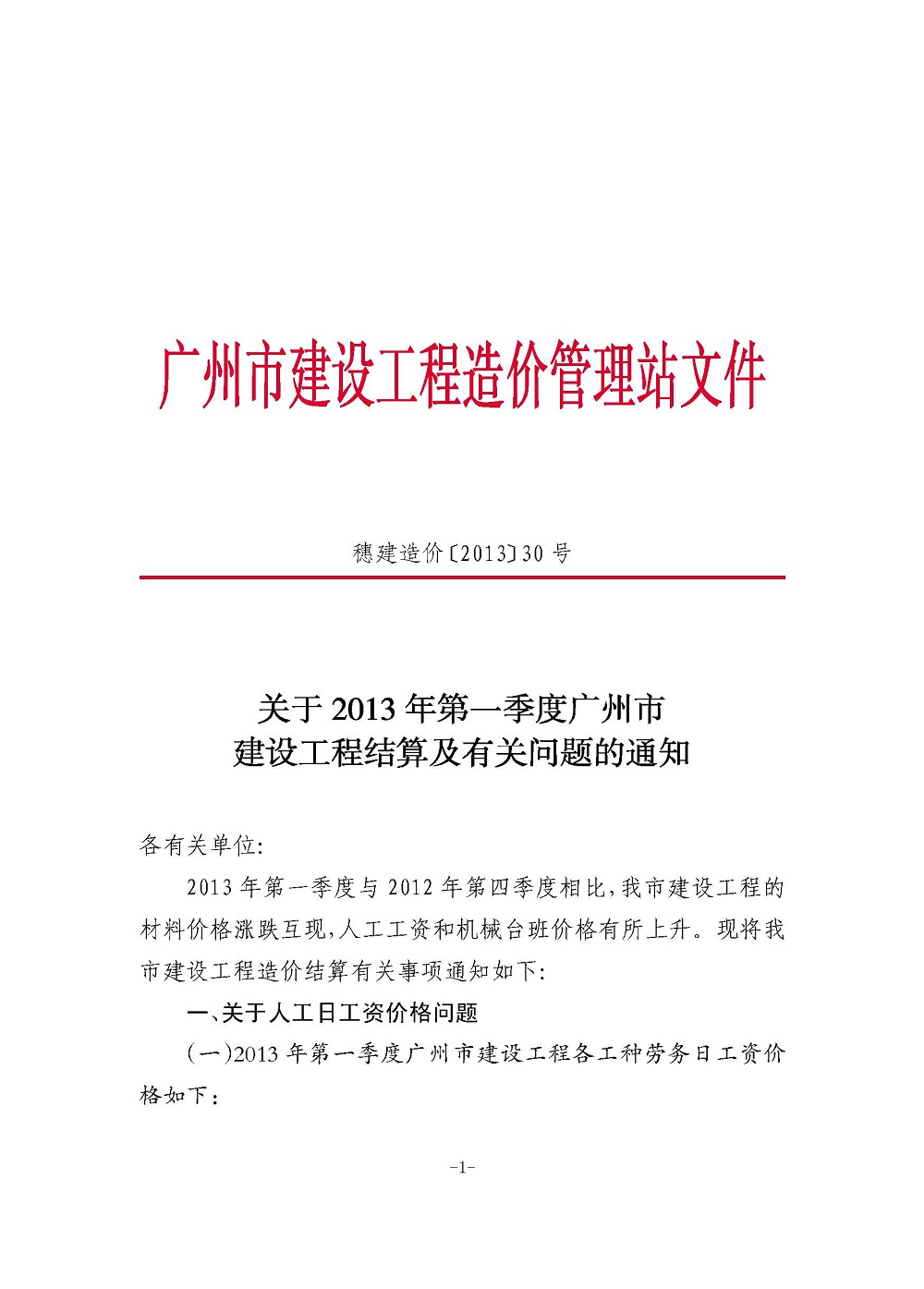 【结算文】关于2013年第一季度广州市建设工程结算及有关问题的通知