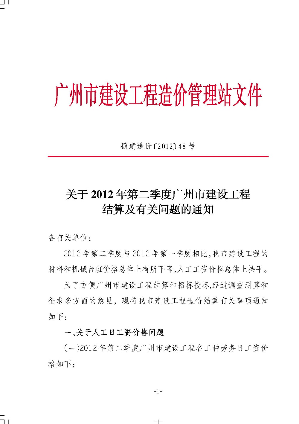 【结算文】关于2012年第二季度广州市建设工程结算及有关问题的通知