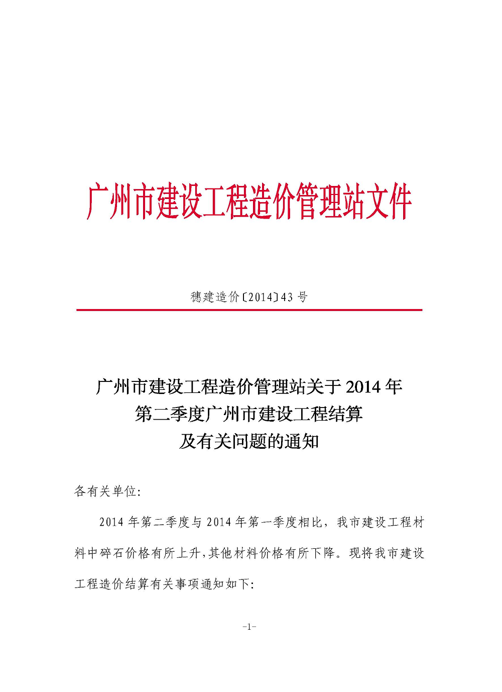 【结算文】关于2014年第二季度广州市建设工程结算及有关问题的通知