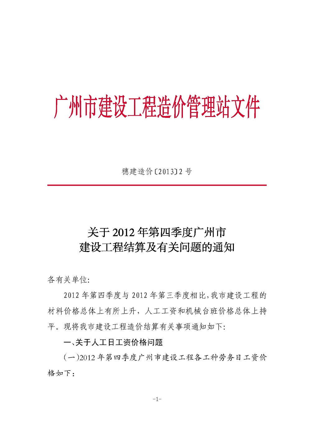 【结算文】关于2012年第四季度广州市建设工程结算及有关问题的通知