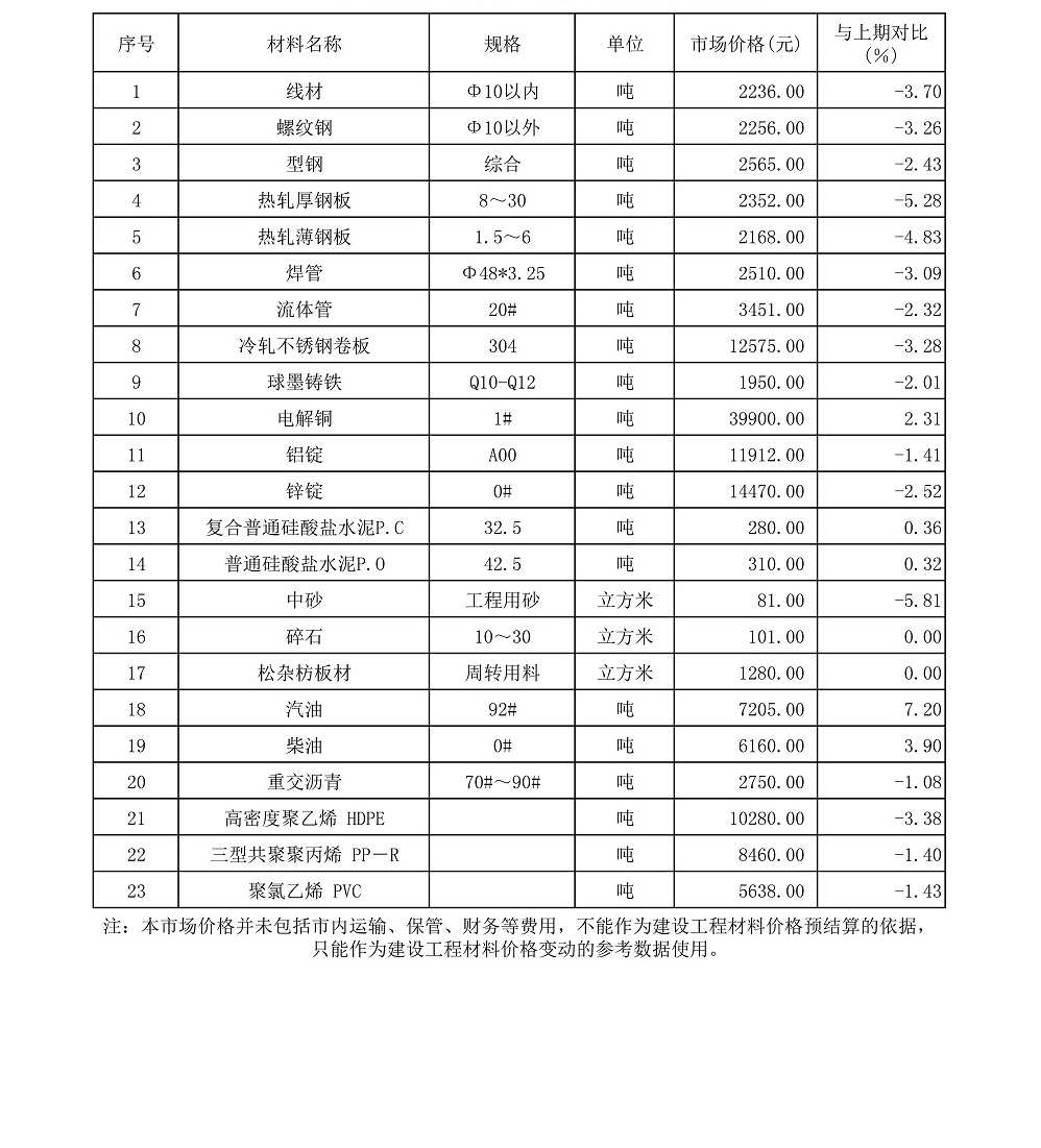 【主材价格】2015年9月份广州市主要原材料市场价格