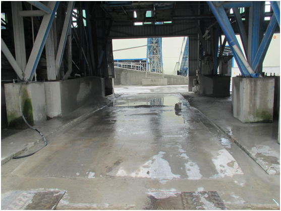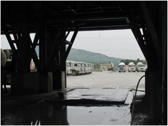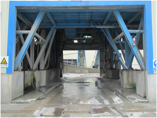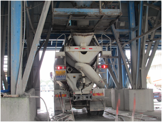 将生产线下料口处车辆停放位置垫高,四周设置排水沟,可保持搅拌车进入下料口时轮胎清洁,避免驶离时将泥浆带到整个厂区,造成污染。